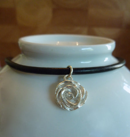Dainty rose handmade made from .999 Fine Silver, which is purer than Sterling Silver, measuring approximately 1.5cm. It hangs on a sterling silver necklace.