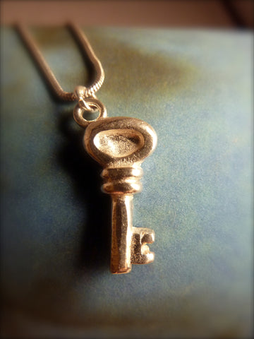 This miniature key is handmade from .999 Fine Silver, which is purer than Sterling Silver, and hangs on a 50cm round black leather necklace with Sterling Silver clasp. Matching earrings available.